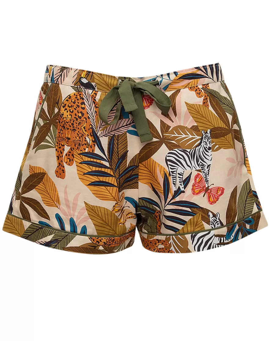 Transport Yourself To The Plains Of Africa And Drift Off To Sleep Dreaming Of Spotting The Big Five In Our Savannah Safari Print Pyjama Shorts. Made From Super-Soft, 60% Cotton, 40% Modal, The Shorts Are Trimmed With Olive Green Modal. Elasticated At The Back Waist With An Adjustable Front Drawstring, The Shorts Have Two Side Pockets And Are Finished With Deep, Cuffed Hems. Wear Them With The Matching Pyjama Top, Cami Or Our Coordinating Modal Cami Or Jersey Top. It’S Easy To Create Mini-Me Looks With Our Savannah Range As Coordinating Styles Are Also Available In Our Minijammies’ Collection.