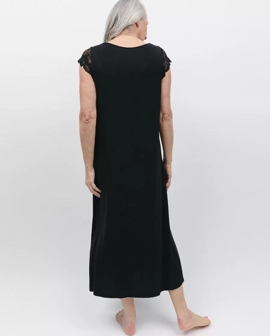Best Sale Winnie Black Lace Detail Jersey Long Nightdress Women Loungewear