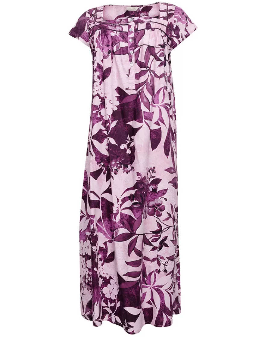Embrace The Beauty Of Bedtime With Our Nora Rose Berry Mix Woven Floral Cap Sleeve Long Nightdress. Made From 60% Cotton And 40% Modal, This Nightdress Offers Unparalleled Comfort And Breathability, Ensuring You Wake Up Feeling Refreshed. The Delicate Ladder Lace Trim Adds A Touch Of Elegance To The Classic Design, While The Cap Sleeves Provide Coverage Without Compromising On Style. The Round Neckline And Five-Button Front Opening As Designed For Ease. Drift Off Into Dreamland With The Lightweight And Moisture-Wicking Properties Of This Nightdress, Embracing A Glamorous And Comfortable Slumber.